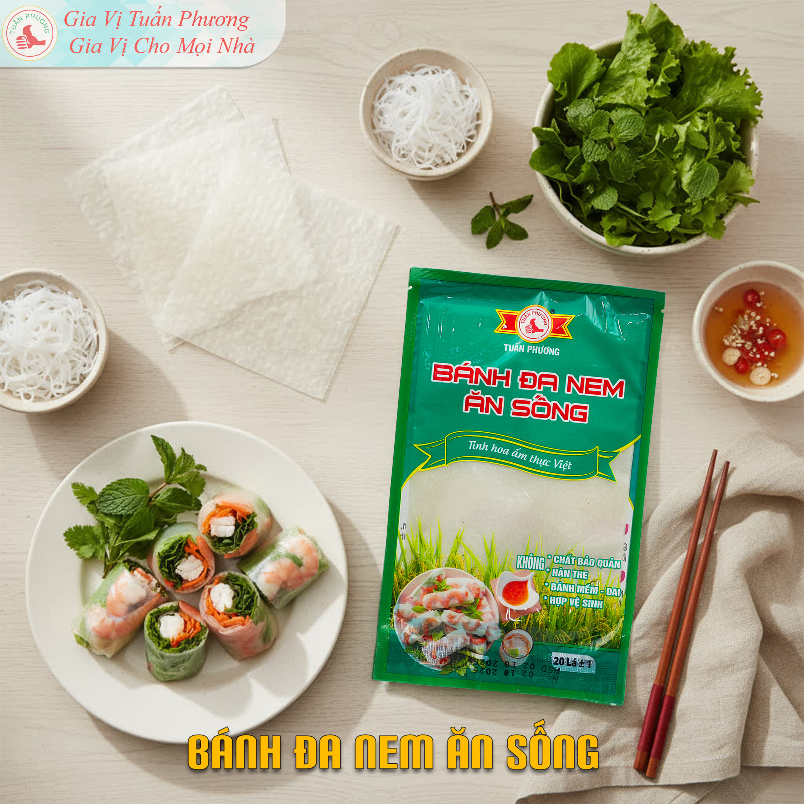 Bánh đa nem ăn sống Tuấn Phương là nguyên liệu được nhiều quán ăn, nhà hàng và bếp kinh doanh lựa chọn nhờ bánh mềm, dai vừa, dễ sử dụng và phù hợp phục vụ số lượng lớn. Sản phẩm phù hợp với các mô hình kinh doanh ăn uống cần chuẩn hóa chất lượng món cuốn, giúp thành phẩm đồng đều và ổn định trong quá trình phục vụ.