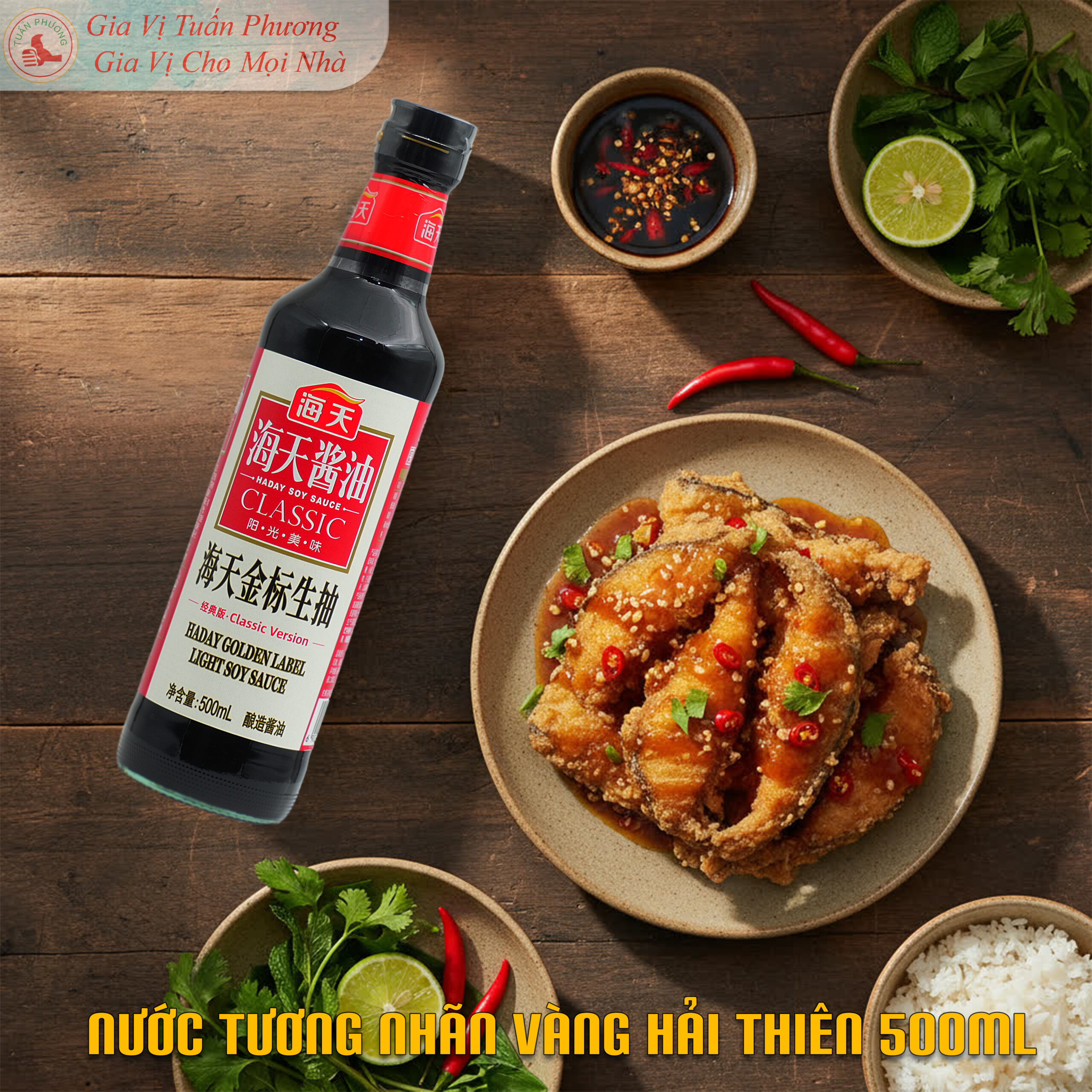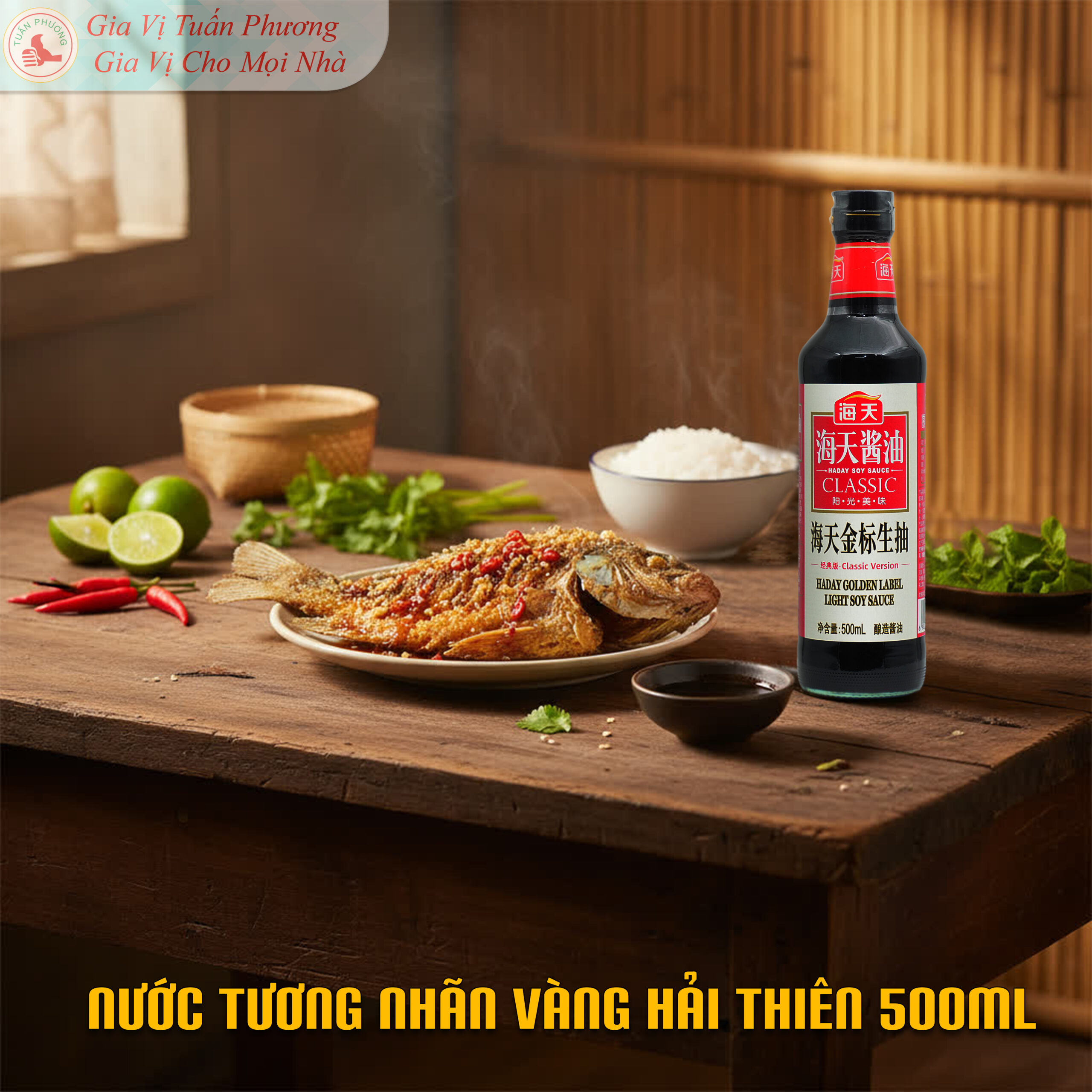 Trang chủ » Cửa hàng » NƯỚC TƯƠNG NHÃN VÀNG HẢI THIÊN 500ML